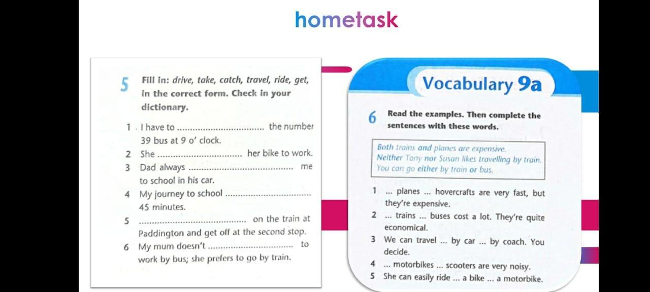 1)get 2)drive 3)takes 4)catch 5)ride 6)travel(Это на 5 задание ) ВОТ 6 1)Both, and 2)Neither, nor 3)either,or 4)Both,and 5)either,or Должно быть правильно сам проверял