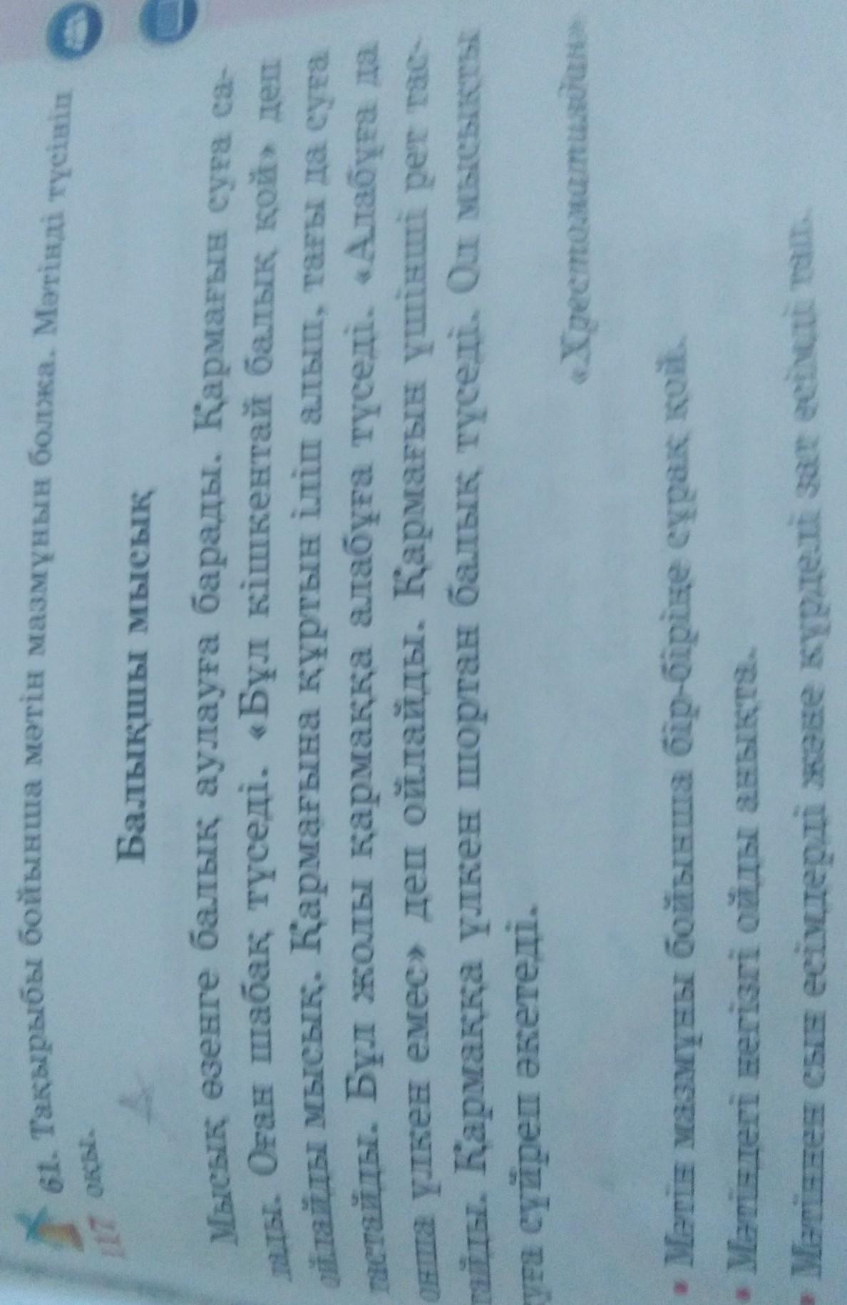 Помогите пожалуста қазақ тілі 61 тапсырма 91 бет балықшы мысық сұрақтарға жауап беру