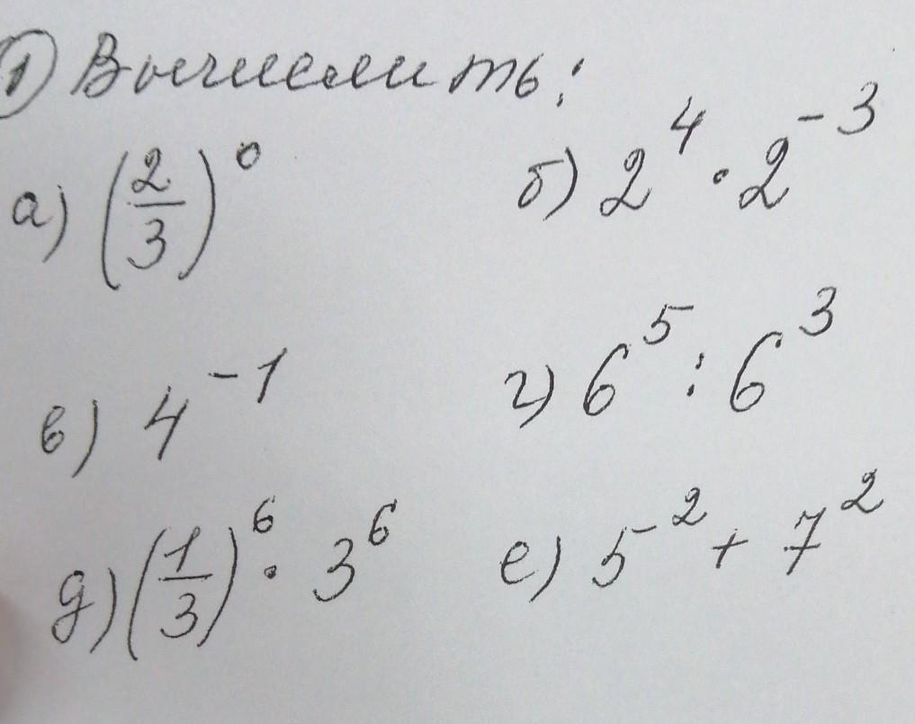 д) (1/3)⁶*3⁶= 3⁻⁶*3⁶=1;