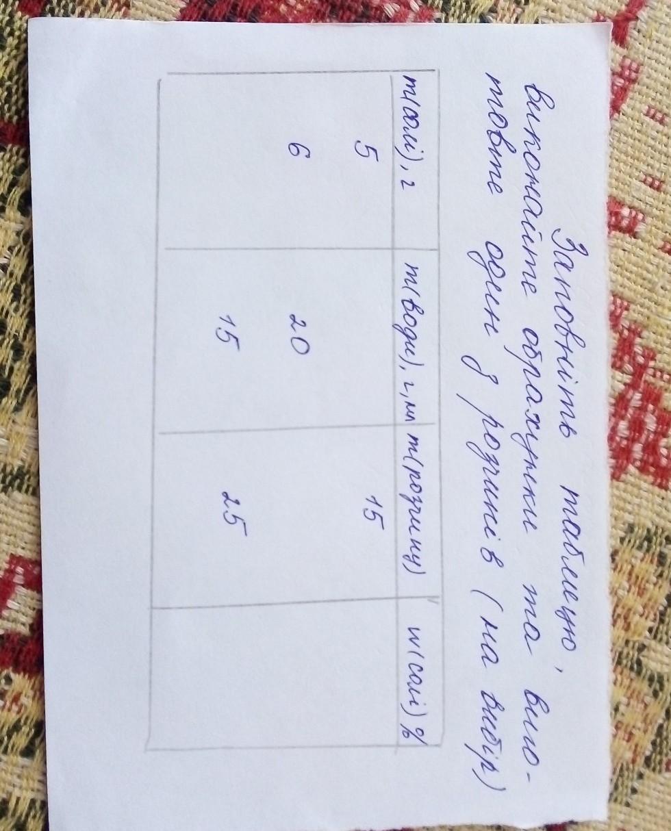 !!!СРОЧНО!!! заповніть таблицю, виконайте обрахунки та виготовте один з розчинів (на вибір) 50 БАЛОВ!!!