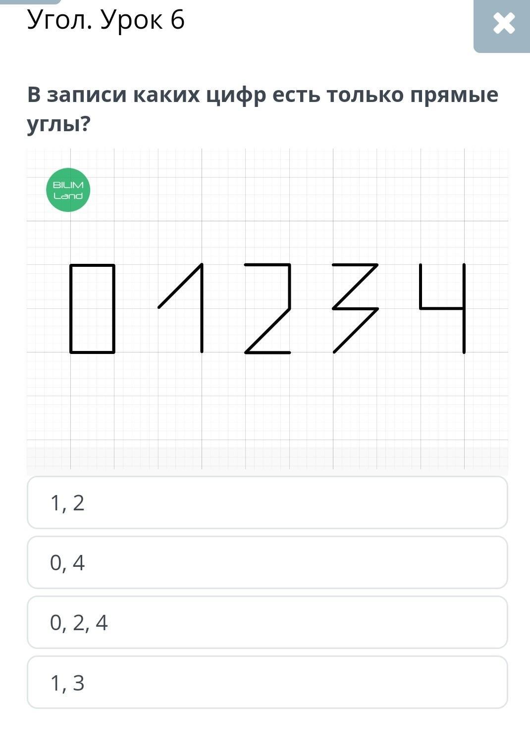 Прямые углы есть только в цифрах 0 и 4