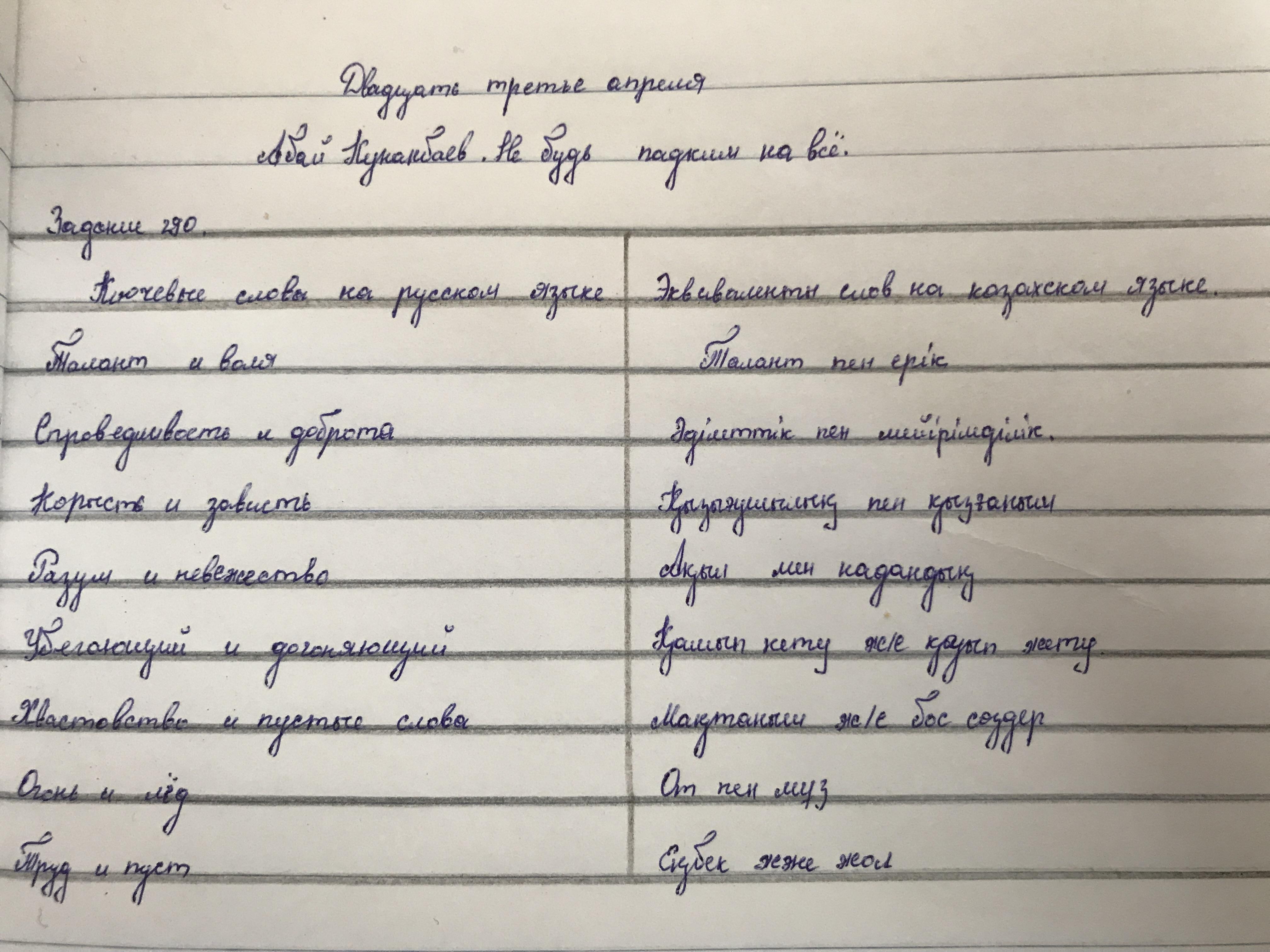 • Выпишите ключевые слова стихотворения, переведите на казахский язык.
