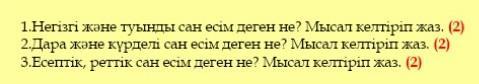 негизги сан есим бир тубирден турады ал туынды еки немесе одан да коп. мысалы негизигиге:бир, бес, алты,он, жиырма. туынды:жиырма бир, елу жети. есесптик мысалы:бир, тогыз, реттик:биринши,тогызыншц