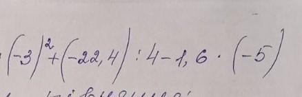 (-3)2 + (-22.4) : 4 - 1.6 * ( -5) = 11.4