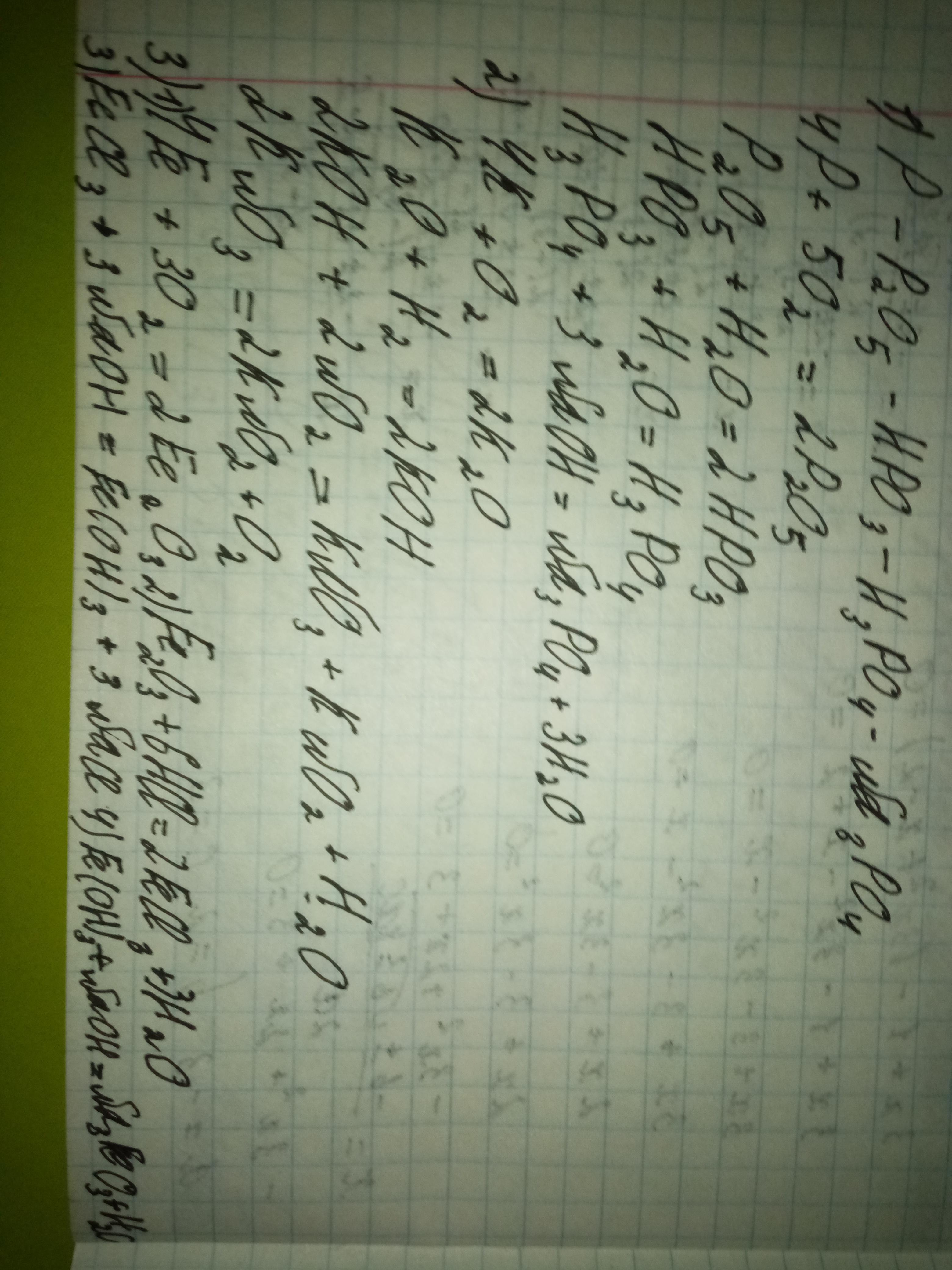 1) P -> P2O5 -> HPO3 -> H3PO4 -> Na3PO4