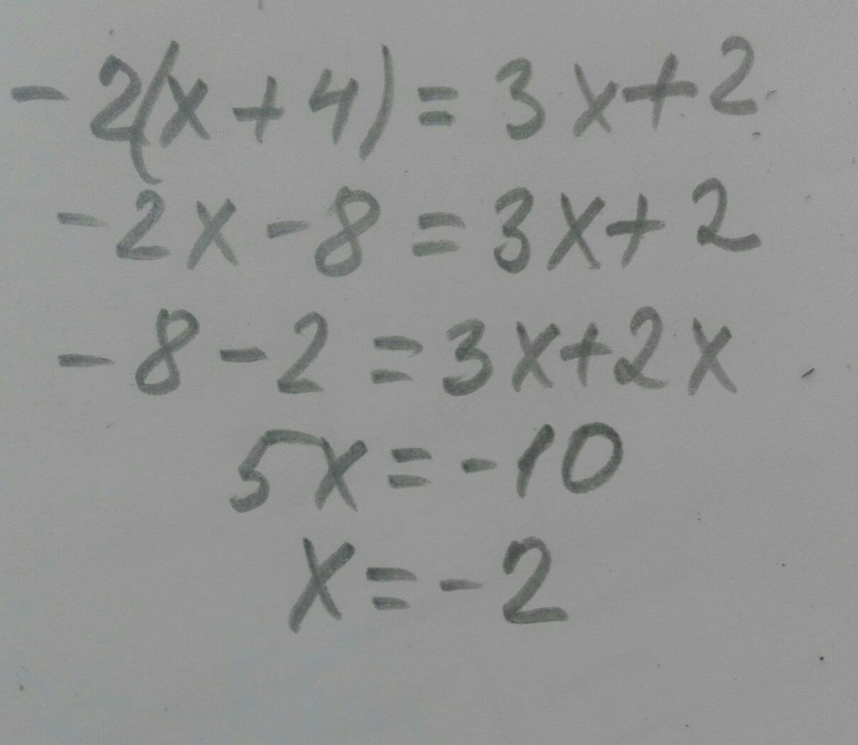 знайдіть корінь рівняння: -2(x+4)=3x+2