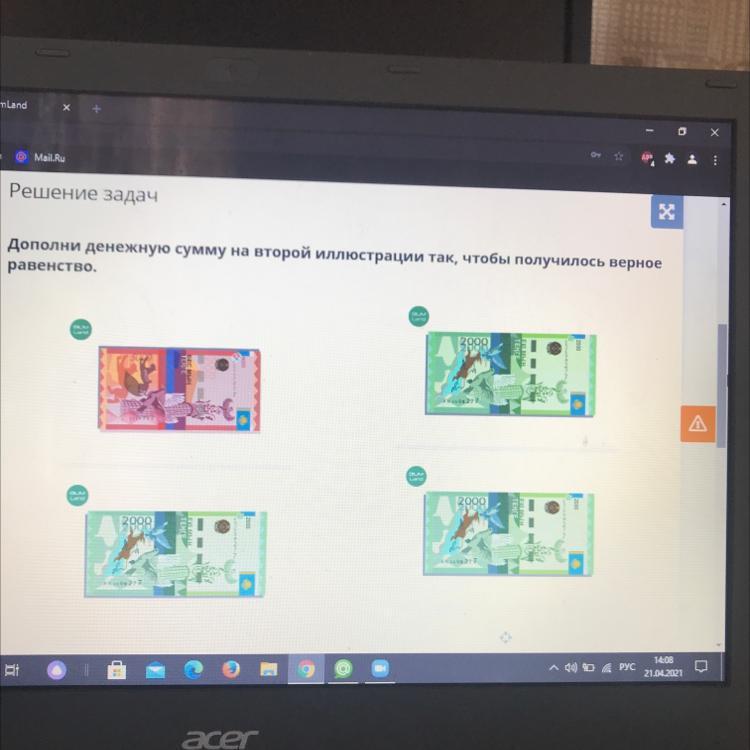 Дополни денежную сумму на второй иллюстрации так, чтобы получилось верное