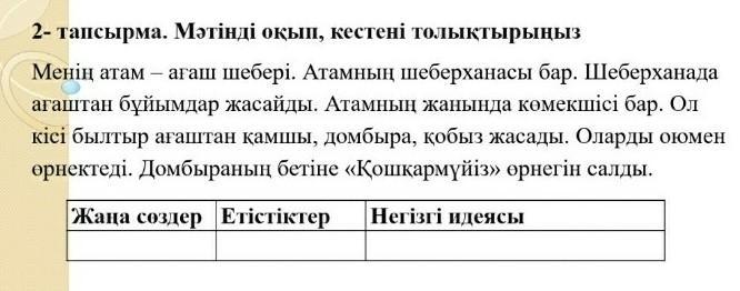 Негізгі идеясы:Атасынның неше түроі заттар жасауы мен еңбек