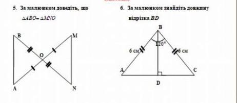 2) Трикутник АВС - рівнобедрений (АВ=ВС), тому BD - бісектриса, відповідно кут ABD = 120/2=60. Трикутник ABD - прямокутний, BD- висота, кут А = 30 (( 180-120)/2) тому BD= 1/2 АВ, як катет проти сторони в 30 градусів. Відповідно АВ = 6/2=3 (cм)