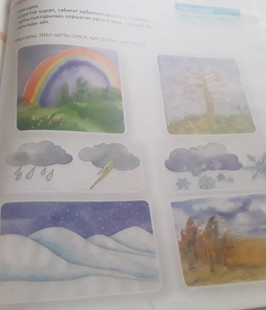 Суретке қарап, табиғат құбылыстарын ата. Табиғат