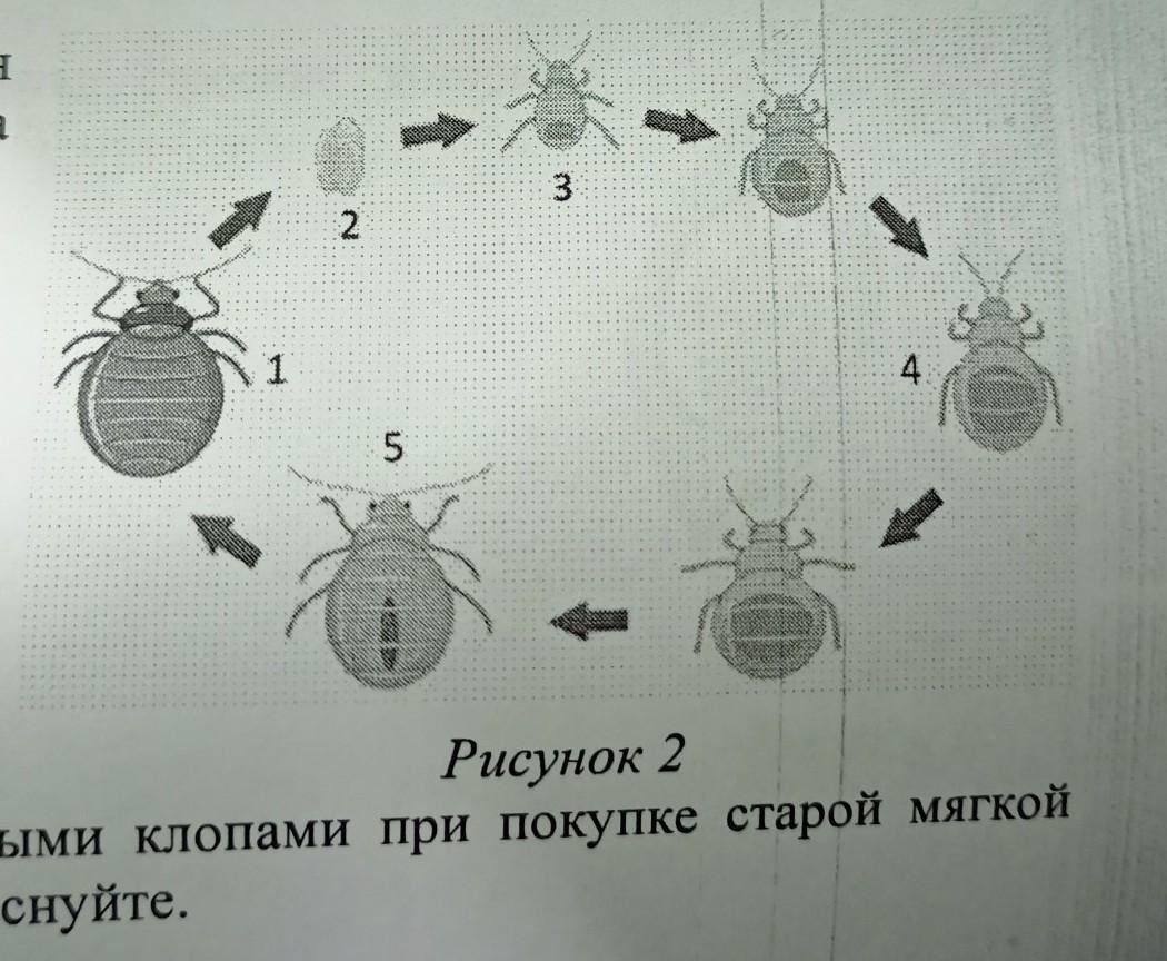 Рассмотрите рисунок 2, на котором представлен цикл развития постельного клопа, и ответьте на