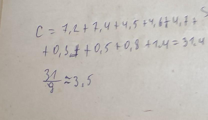 знайдіть середнє арифметичне чисел 7,2 і 7,4 4,5 4,6 і 4,7 0,3 0,5 0,8 і 1,4