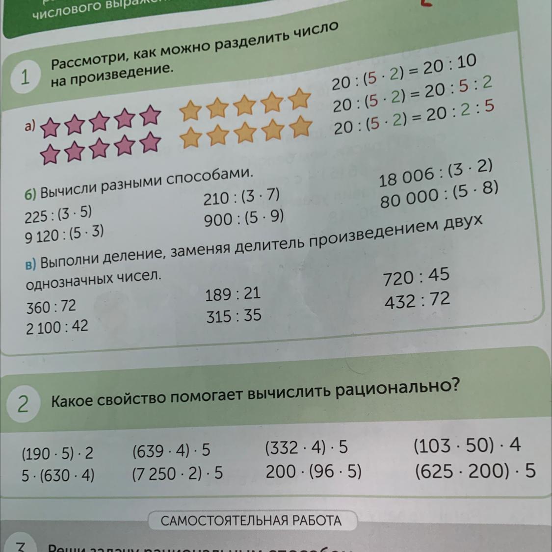 в) Выполни деление, заменяя делитель произведением двух
