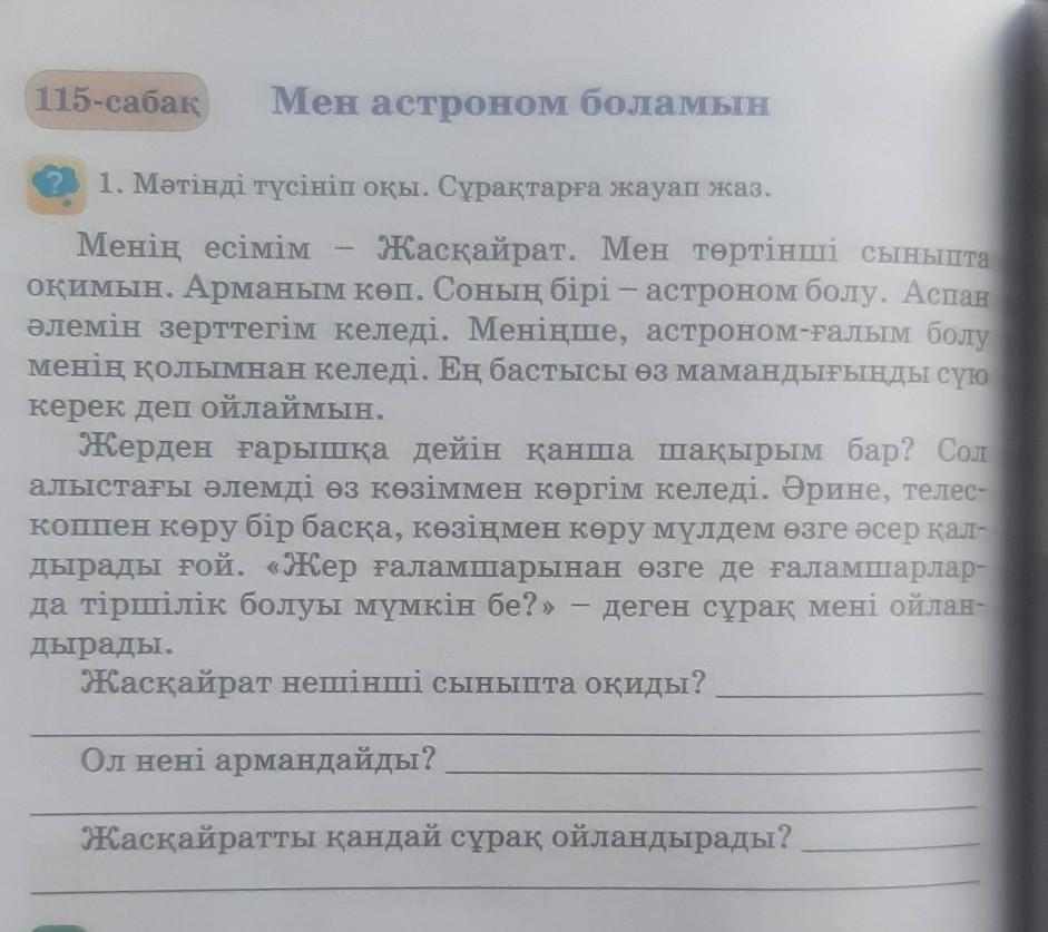 21. Мәтінді түсініп оқы. Сұрақтарға жауап жаз.