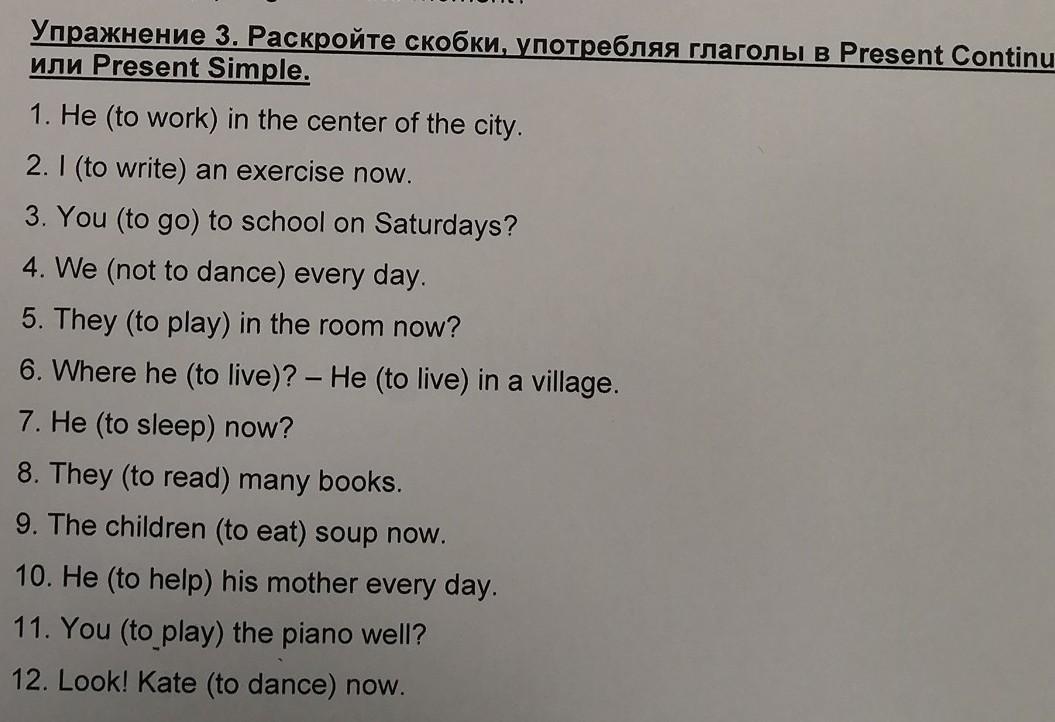 2.writing3.to goes 4. aren't dancing 5.to playing 6. to lives? 7.to sleeping? 8.to read 9.to eating 10. to help 11. to playing 12.to dancing.