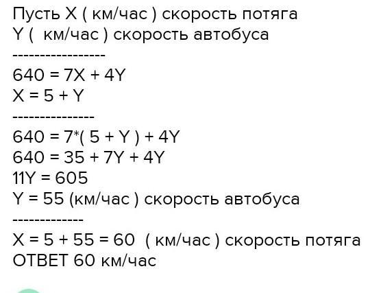 швидкість автобуса на 10 км/год більша за швидкість потяга?