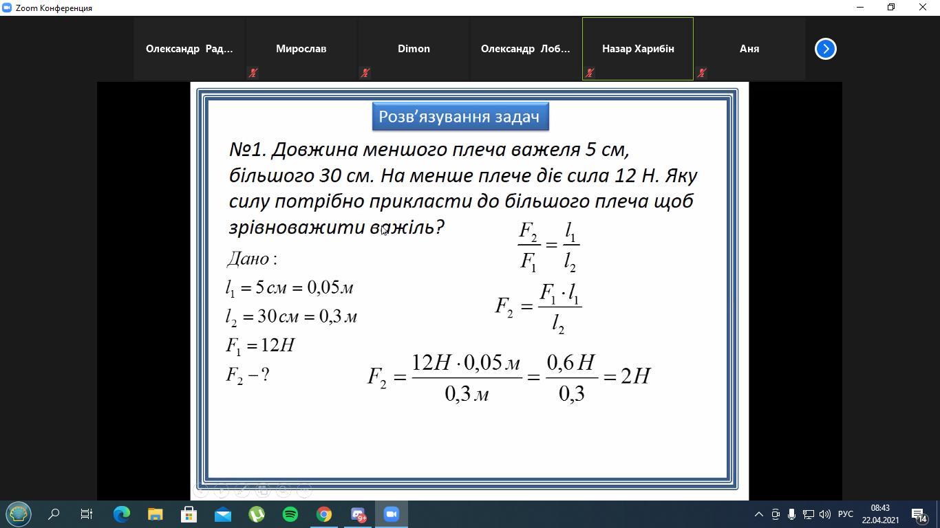 довжина меншого плеча важеля 5см. більша 30 см. На менше діє сила 15 Н . Яку силу треба прикласти до більшого плеча щоб зрівноважити важіль