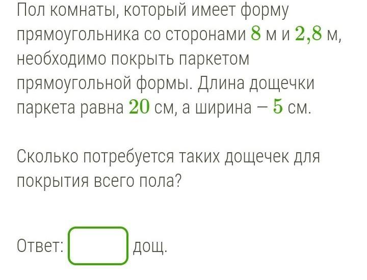3) Чтобы определить, сколько потребуется дощечек, надо площадь комнаты разделить на площадь одной дощечки: