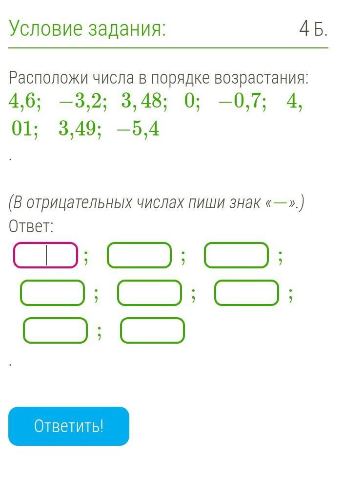 -5,4; -3,2; -0,7; 0,1; 3,48; 3,49; 4; 4,6