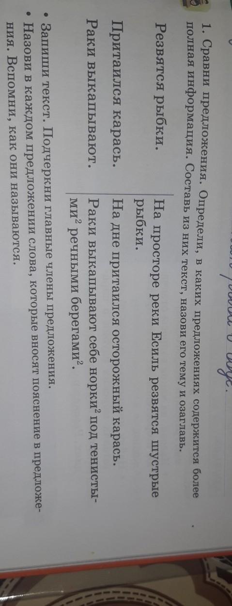 Предложения в левой колонке простые, которые состоят из подлежащего и сказуемого и дают краткую информацию. А в правой колонке предложения полные, с второстепенными членами, которые дают полную информацию