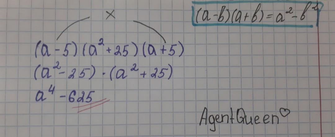 (а-5)(а²+25)(а+5)=(а²-25)×(а²+25)=а⁴-625