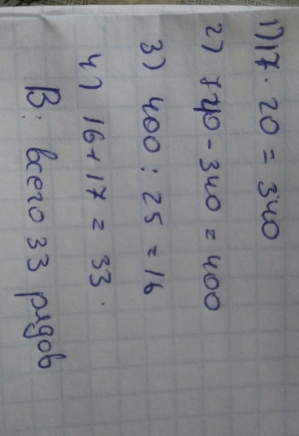 16) В школу привезли 740 саженцев. В первый день посадили 17 рядов по 20