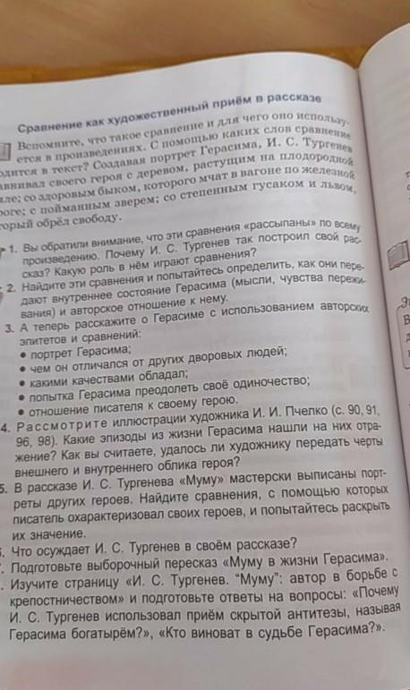 1) сравнения Герасим и Татьяна они были разные люди они были не похожи на друг друга Герасим был немой. А Татьяна была хорошей женщиной и помогала Герасиму как подружка. Я могу ответить только на этот вопрос. Если не правильно то простите пожалуйста