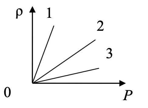 На рисунке приведены графики зависимости ρ 1 плотности ρ четырех разных идеальных газов от 2 давления Р при одинаковых температурах. Большей