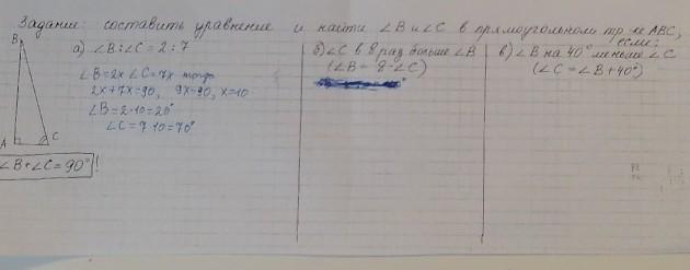 ПОЖАЛУЙСТА 29 БАЛЛОВ! Задача:составить уравнение и найти угол B и угол C в прямоугольном треугольнике.