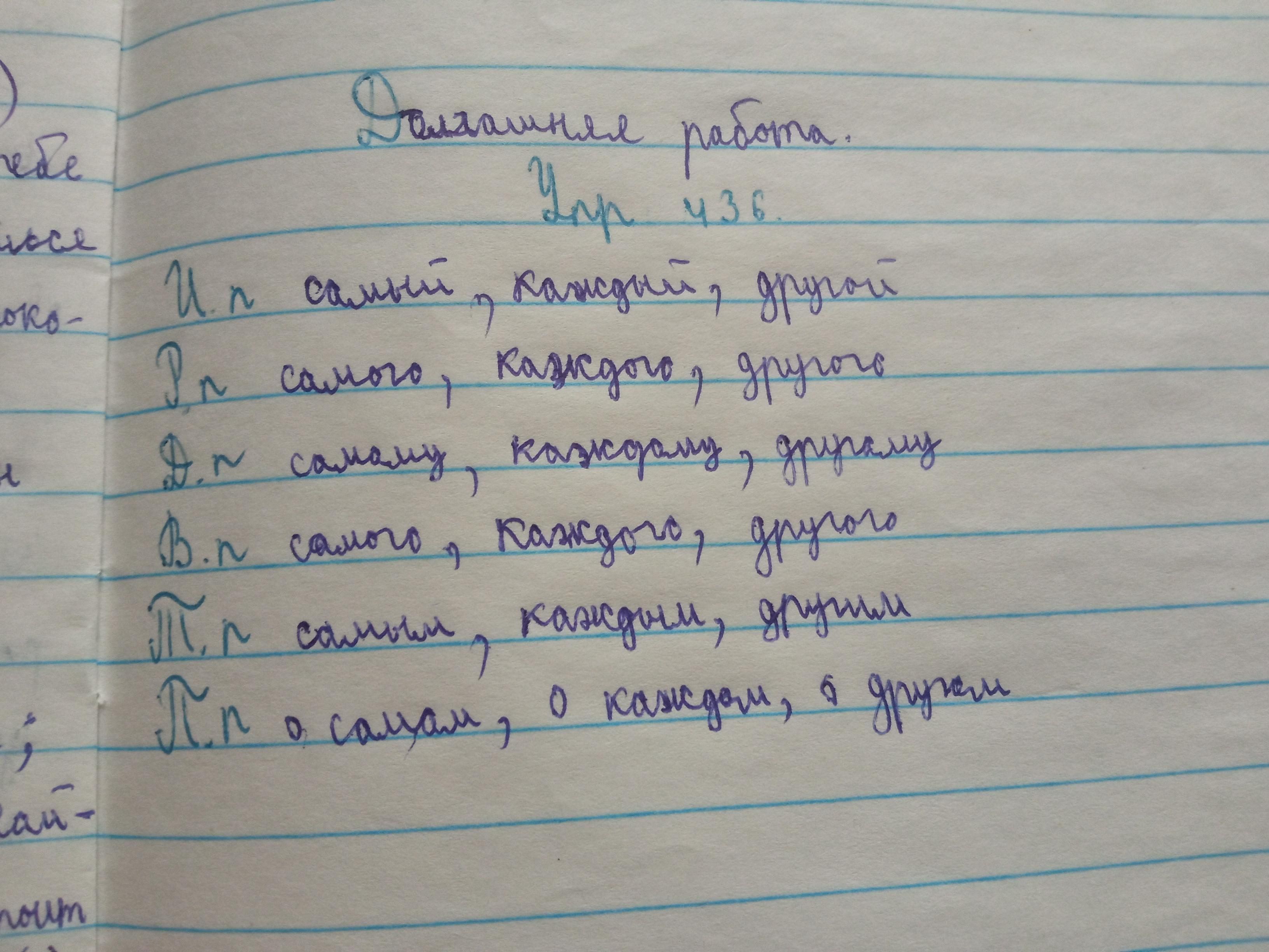 Упражнение 436. Просклоняйте любые три определительных местоимения. Сде-