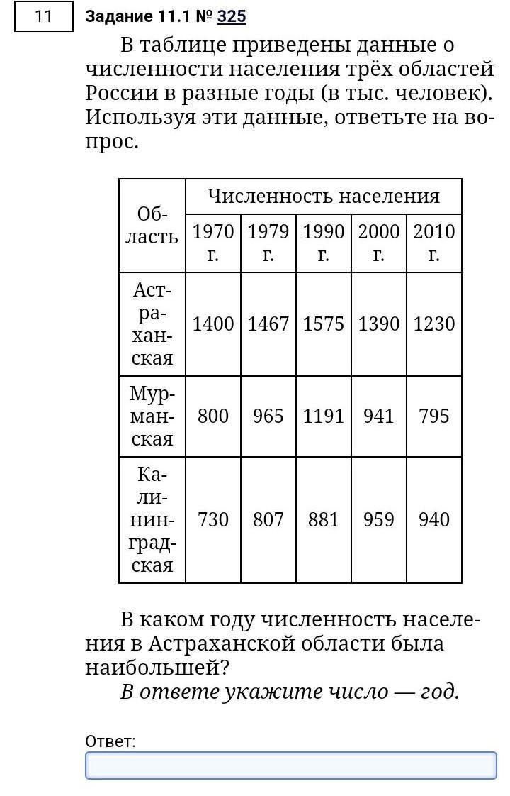найди ряд "Астраханская" и найди в нём наибольшее число (это 1575) теперь посмотри в какой колонке он стоит (1990г) это ответ