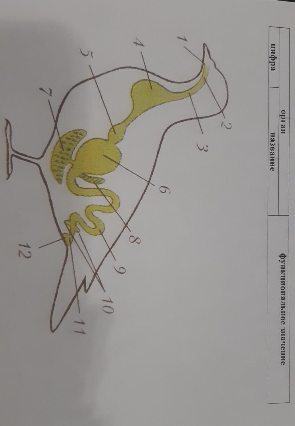Назовите органы пищеварительной системы птицы обозначенные на рисунке цифрами 1-12?