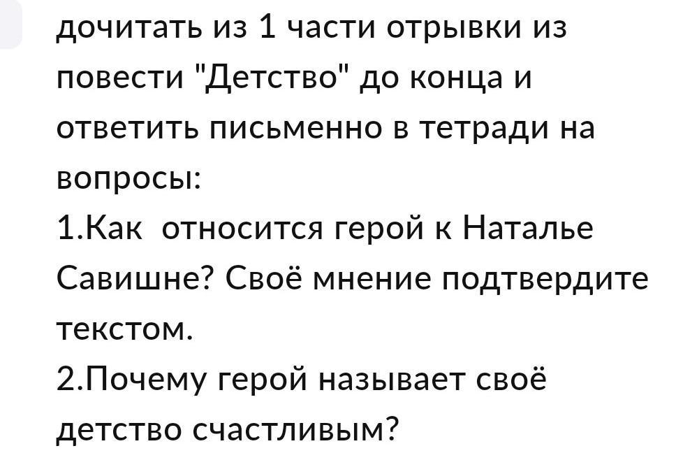 Герой помнит старушку, с которой он делился всеми своими мыслями и мечтами, к которой прибегал между уроками, которая курила «очаковское куренье» , привезенное когда-то дедом героя, и была владелицей сундуков, где можно было найти все, что душе угодно, которая баловала их и заботилась о них. «С тех пор как я себя помню, помню я и Наталью Савишну, ее любовь и ласки; но теперь только умею ценить их, – тогда же мне и в голову не приходило, какое редкое, чудесное создание была эта старушка. Она не только никогда не говорила, но и не думала, кажется, о себе: вся жизнь ее была любовь и самопожертвование»