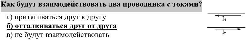 Если направление токов одинаковы,то параллельные проводники притягиваются , если же направления токов противоположны-отталкиваются
