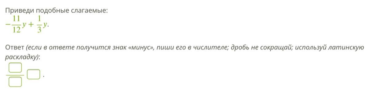1/3y= 4/12y. -11/12y+4/12y= -7/12y