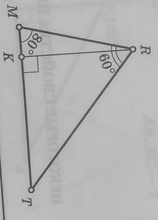 MRK = 180(сумма углов треугольника) - RKM - M = 180 - 90 - 80 = 10