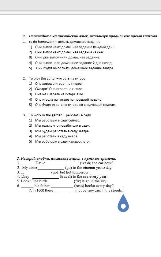 1.4 they did their homework 2 days ago