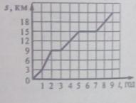 На рисунку зображено графік зміни руху туриста. Через скільки годин після виходу з табору турист зробив другу зупинку?