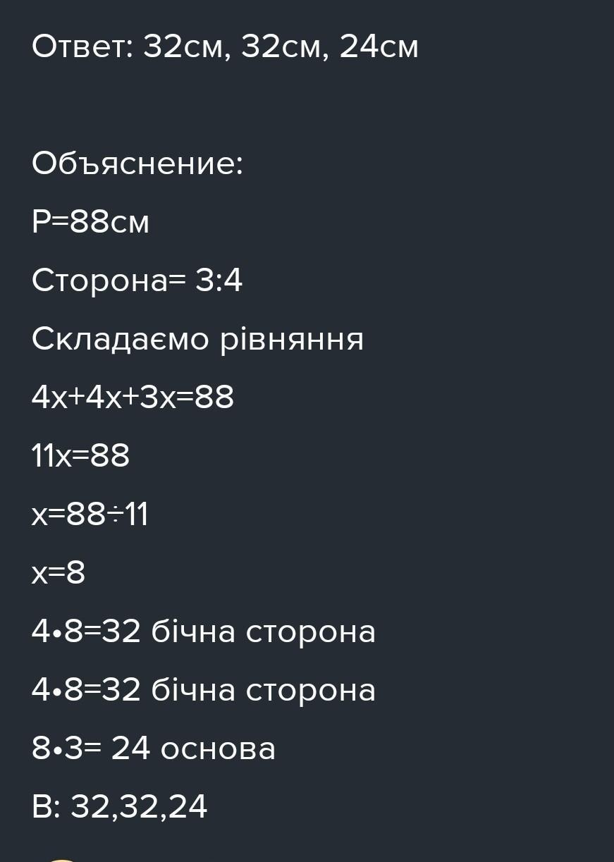 2) 12÷2=6 (см) - бічна сторона трикутника