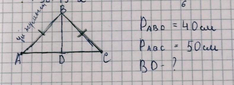 ABD 40 см ал ABC 50см енды ортасындагы BD канша см екенын табу керек