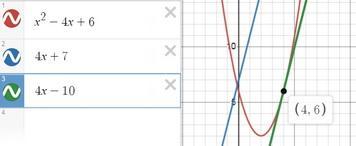Знайдіть рівняння дотичної до графіка функції f(x)=x^2-4x+6 яка паралельна прямій y=4x+7.
