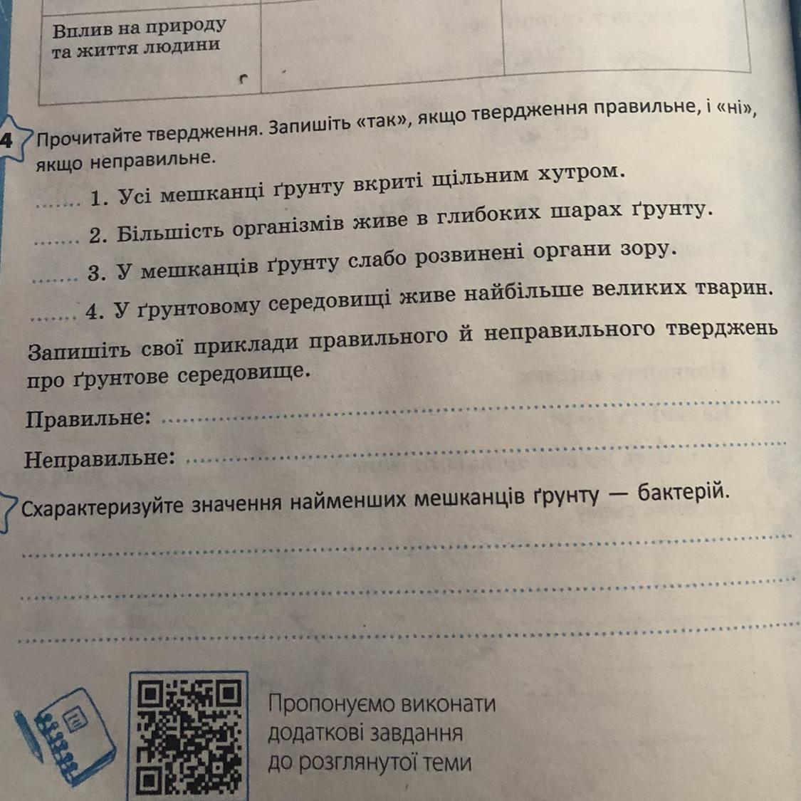 4 задание 1 нет, 2. да, 3.да, 4.нет 5 задание: у них немае ніг, зору, органів.