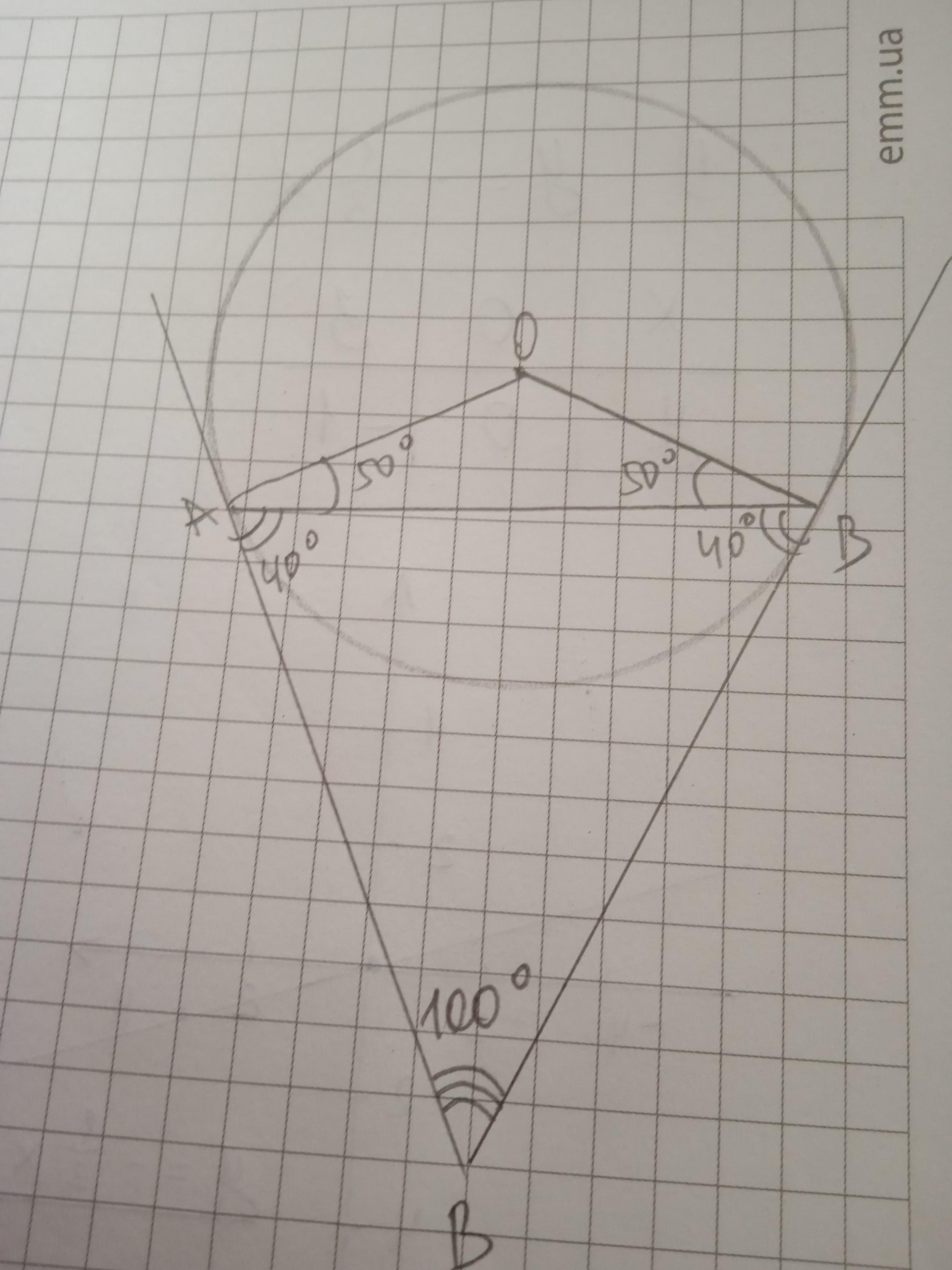 ∠АОВ=∠АВО, т.к. АО=ОВ как радиусы окружности, ΔАОВ - равнобедренный