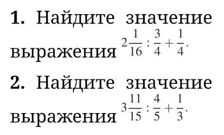 Найдите значение выражения 2 1/16:3/4+1/4 ; 3 11/15:4/5+1/3