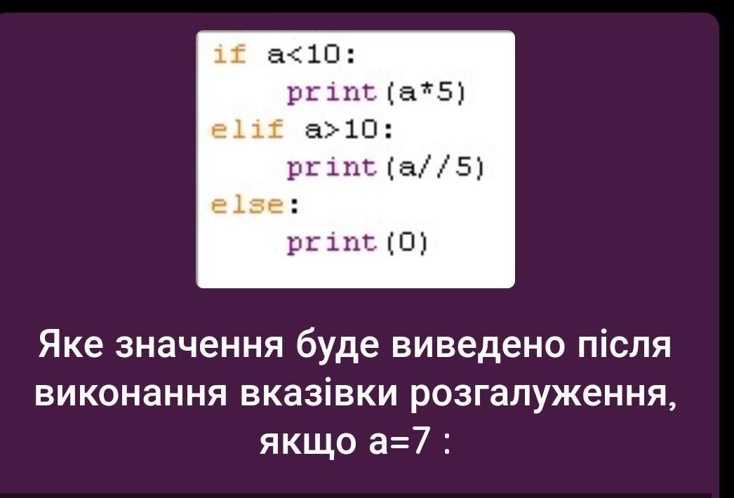 Т.к. семь действительно меньше десяти, тогда выполнится программа (а*5) . а=7 , поэтому 7*5 = 35