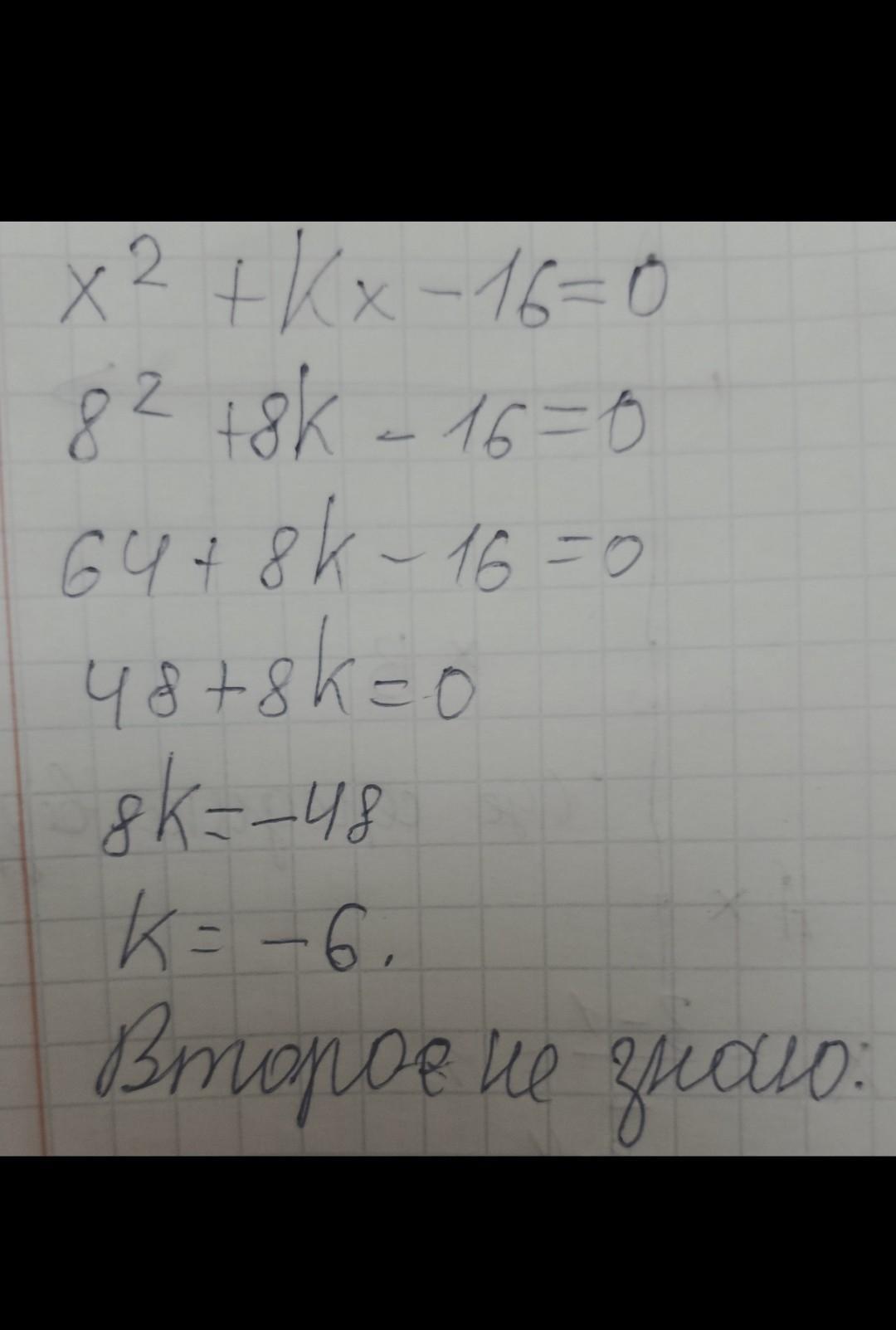 1) число 8 є коренем рівняння х2 +кх -16= 0. Знайти значення к і другий корінь рівняння