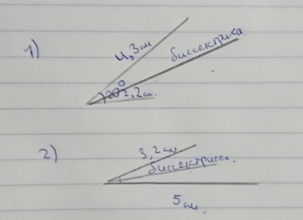 Помогите пожалуйста начертить построить биссектрису данного угла 1) а=4,3 см в=2.2 см <20* звездочка это градус