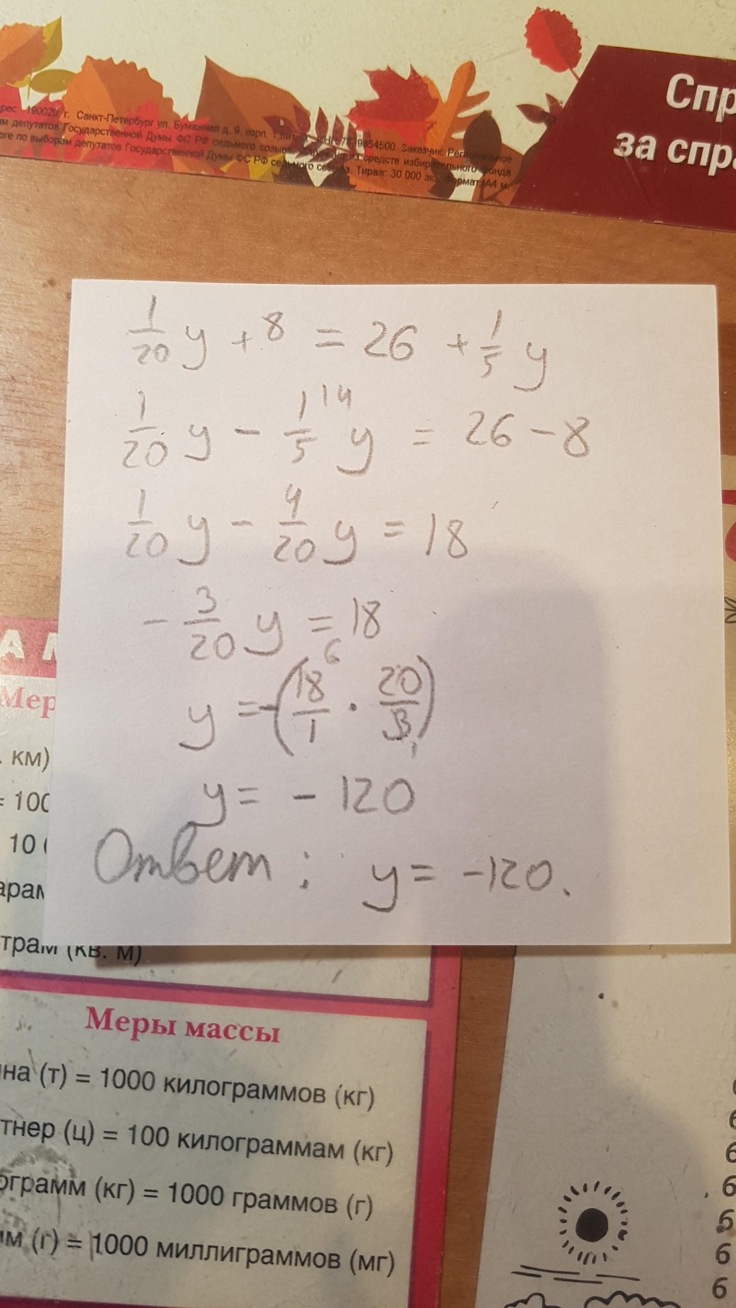умножить обе части на 20 (чтобы избавиться от знаменателей)