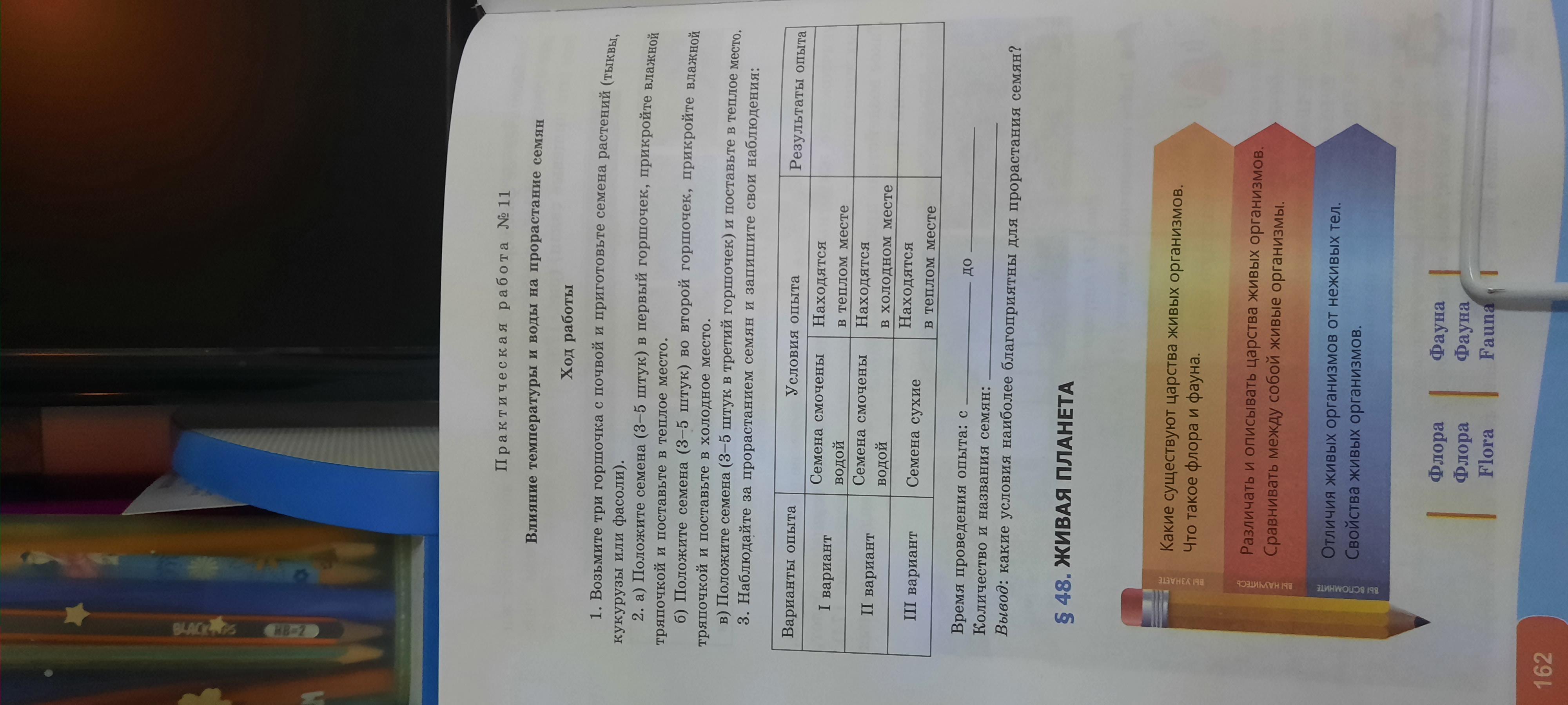 1. Семена проросли, т.к. для роста растениям необходимы влага и тепло (и солнечный свет)
