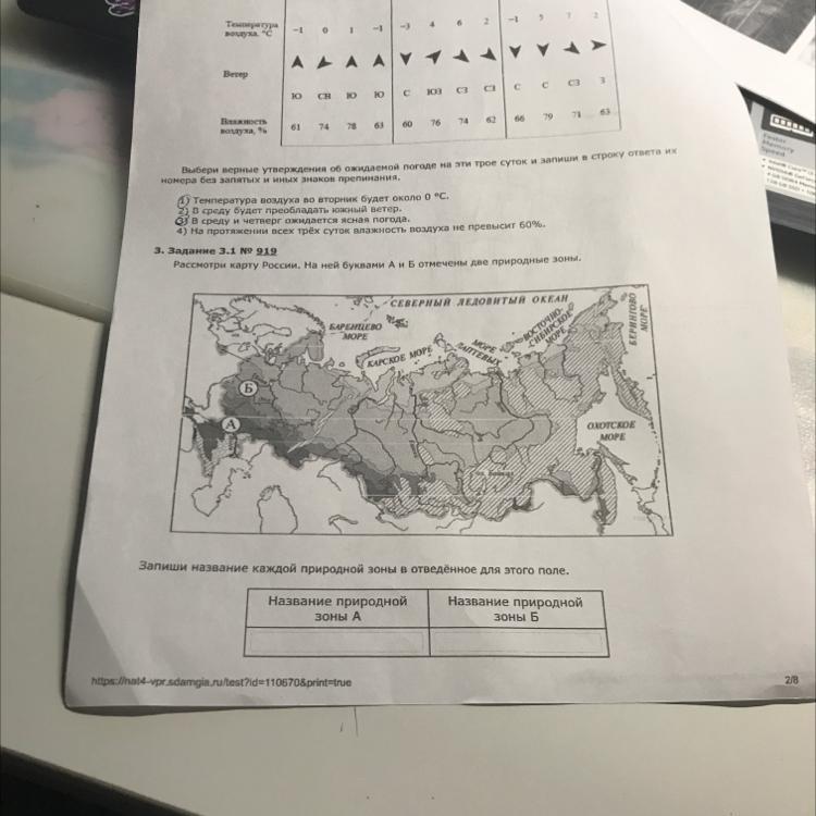 Рассмотри карту России. На ней буквами А и Б отмечены две природные зоны.